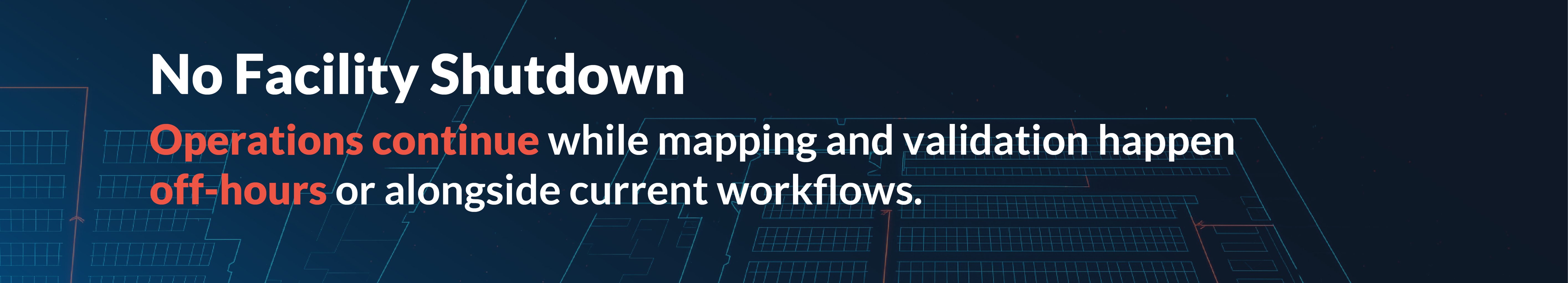 • No Facility Shutdowns: There is no need to stop operations to cut floors or install reflectors. The system can be mapped and validated during off-hours or alongside your current operations.